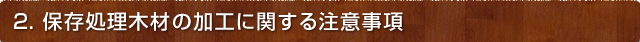加工時の取扱いによっては保存処理木材の耐用年数を縮めてしまう恐れがあります。