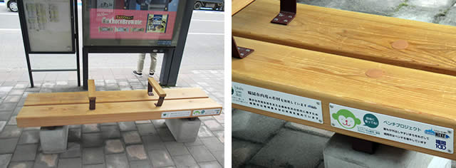 福岡市のベンチプロジェクトにおいて、福岡市内の西鉄バス停留所に福岡市産材杉を使ったエコアコールウッドのベンチが採用されました。(福岡市内 65基)